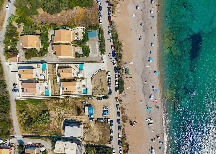 Το Αγγελόκαστρο Κέρκυρας απέχει 10 λεπτά οδικώς από την παραθαλάσσια βίλα, ενώ Μέγα Λιθάρι είναι σε απόσταση 25 λεπτών με τα πόδια.